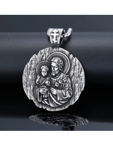 Express your faith with elegance with this stunning Saint Joseph Medal in stainless steel. This high-quality piece stands out for its large size, solid weight and refined finish.