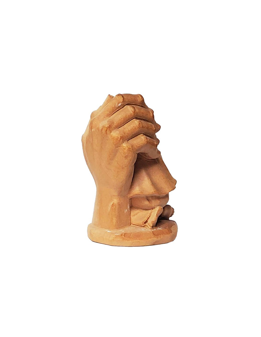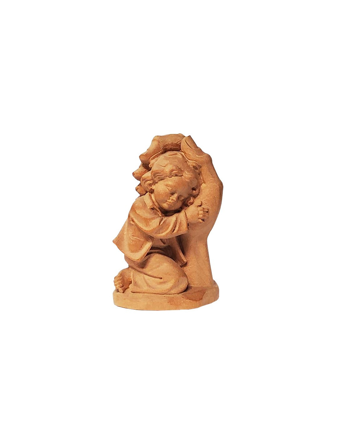 Beautiful wooden sculpture of an adult hand warmly holding a child, the latter nestling in the palm. A very beautiful decorative item that invites tenderness!