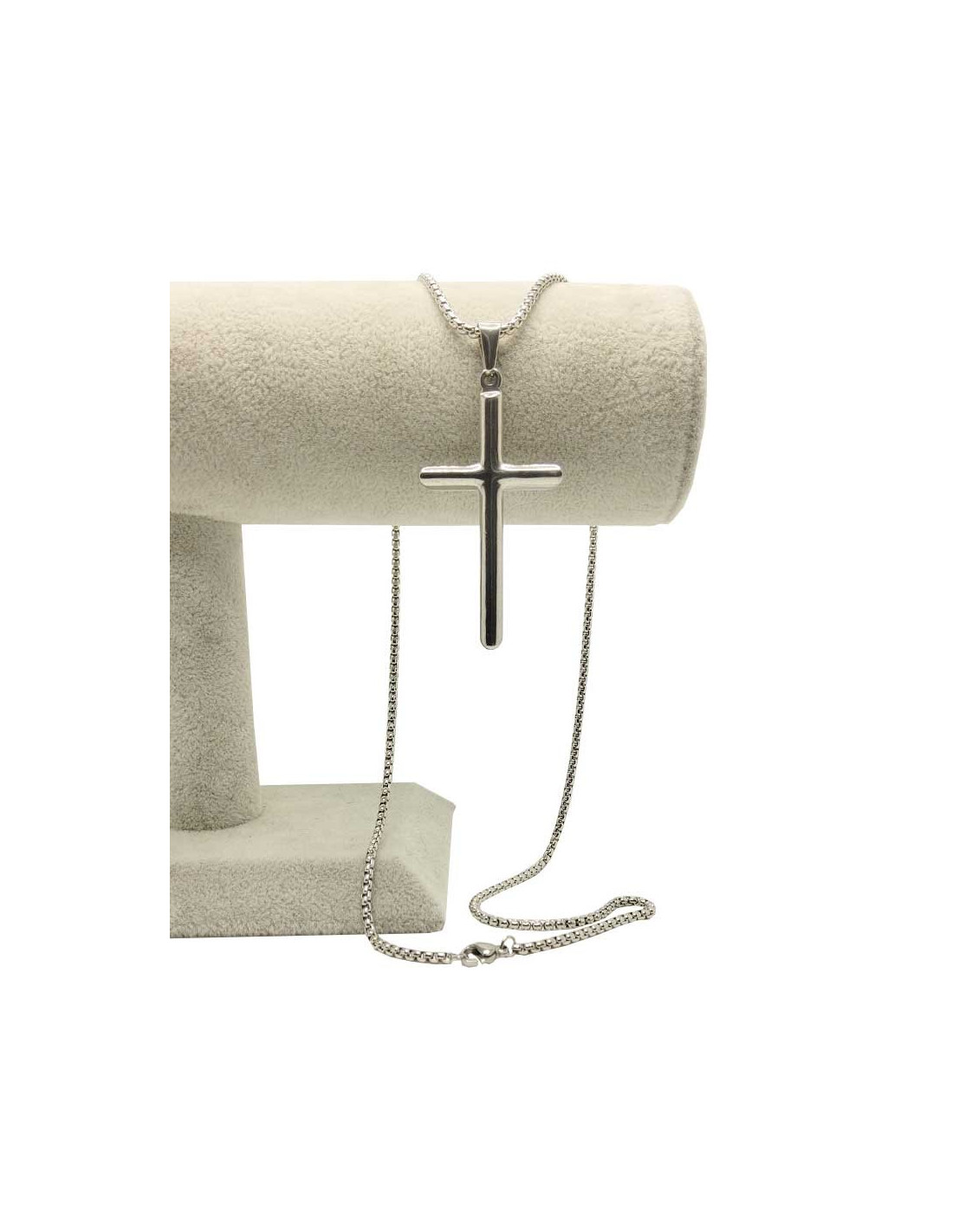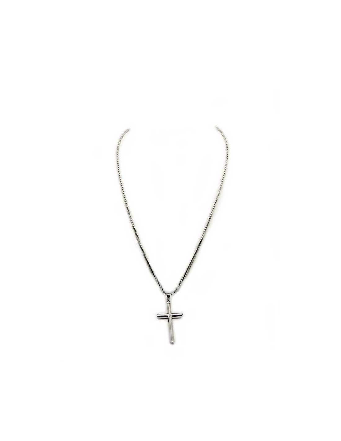 Necklace with simple and elegant stainless steel Jesus cross pendant. The cross has a modern style.
