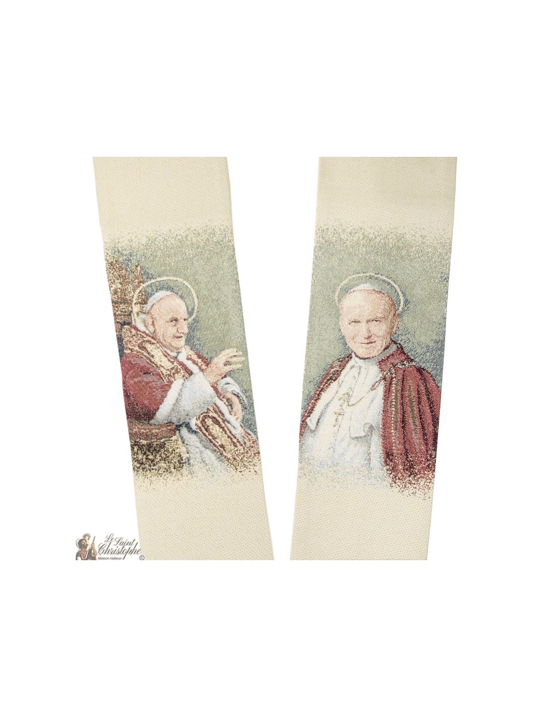 This priest's stole is woven with the image of Popes Saint John XXIII and Saint John Paul II. The creamy-beige background is a delicate gradient. The weave is a true tapestry-embroidery with an admirable finish, inspired by the tapestries of Bruges.