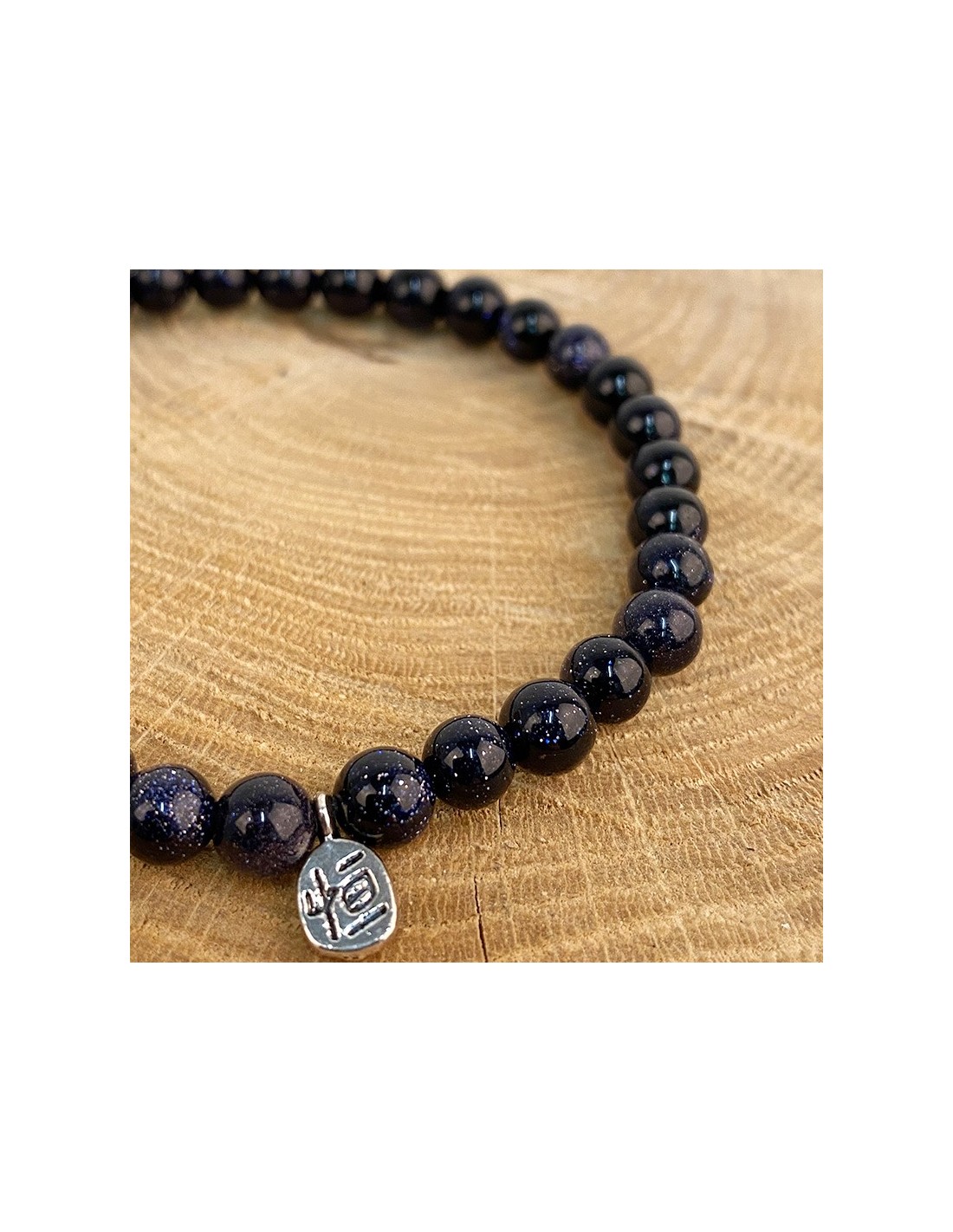 This elastic bracelet made of synthetic blue sand stone beads is a delicious and mysterious touch to wear on your wrist.