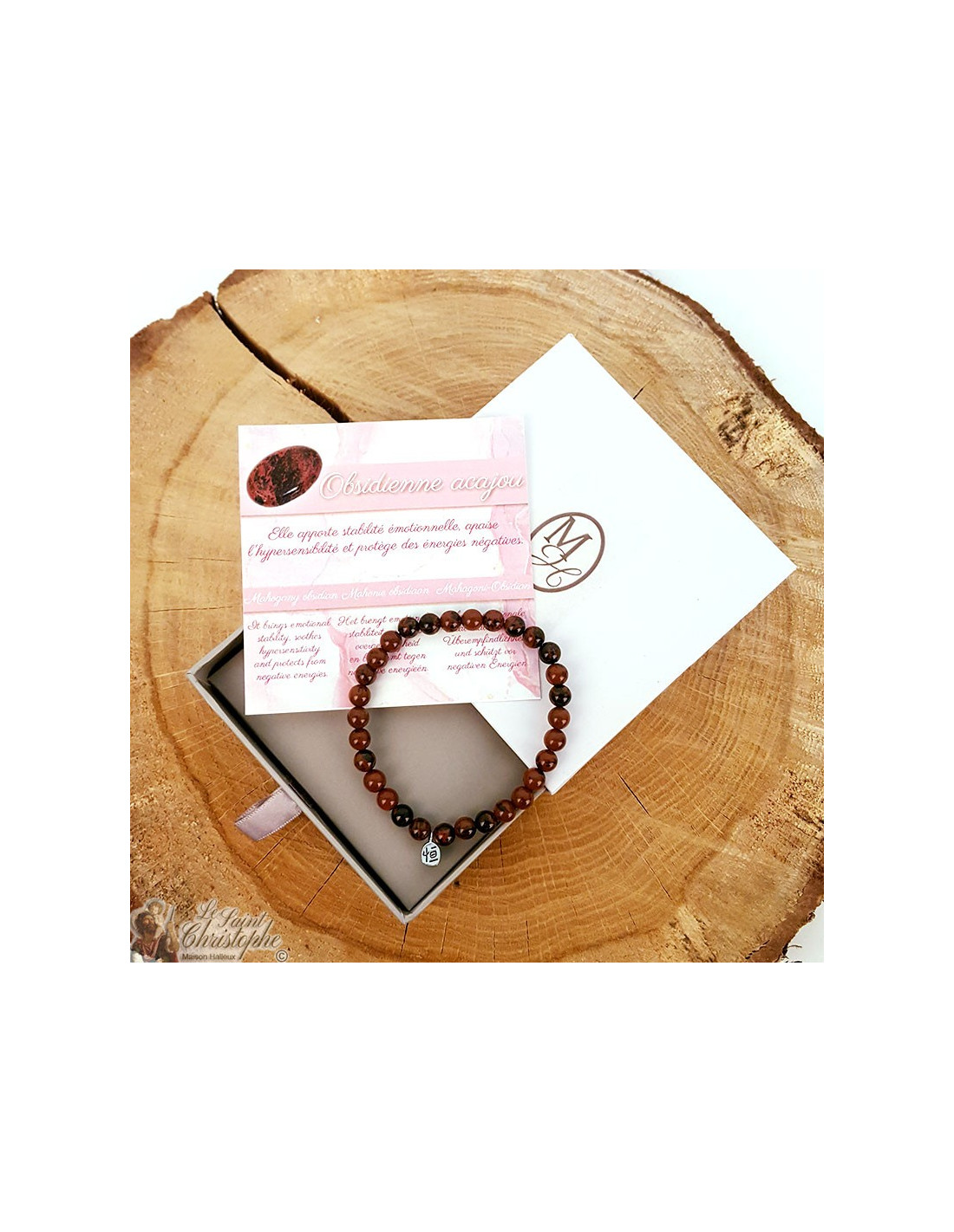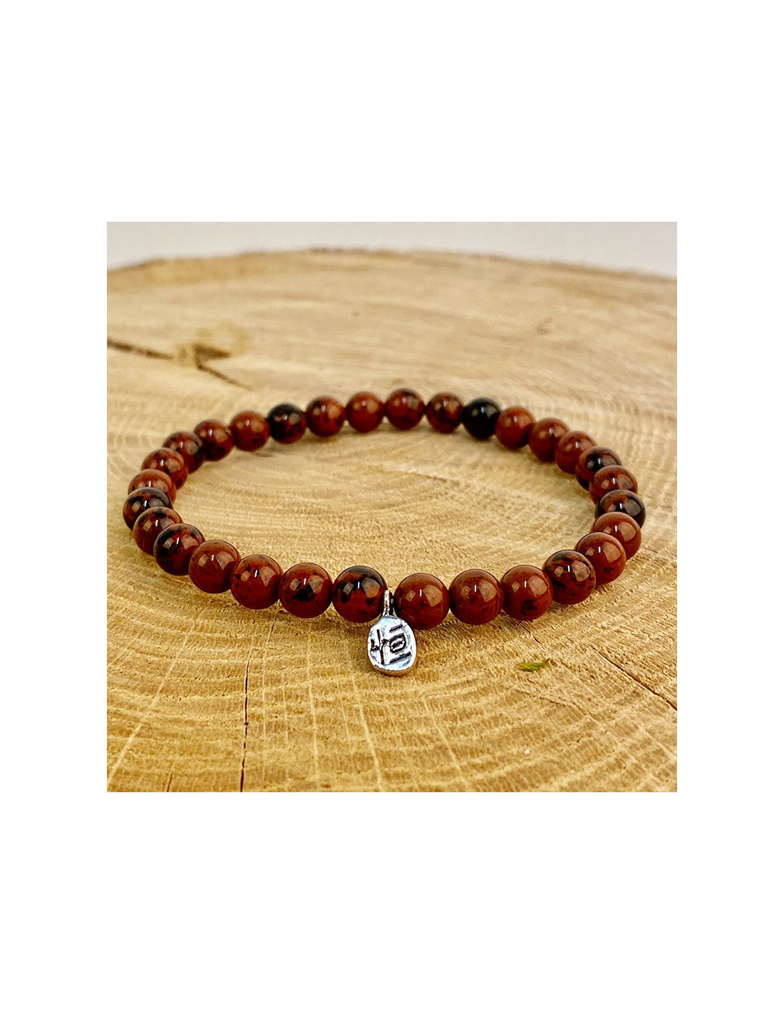 Elastic thread bracelet with natural mahogany obsidian stones, also known as mahogany. Accompanied by a small silver charm, this bracelet gives a soft and serene touch to your wrist.