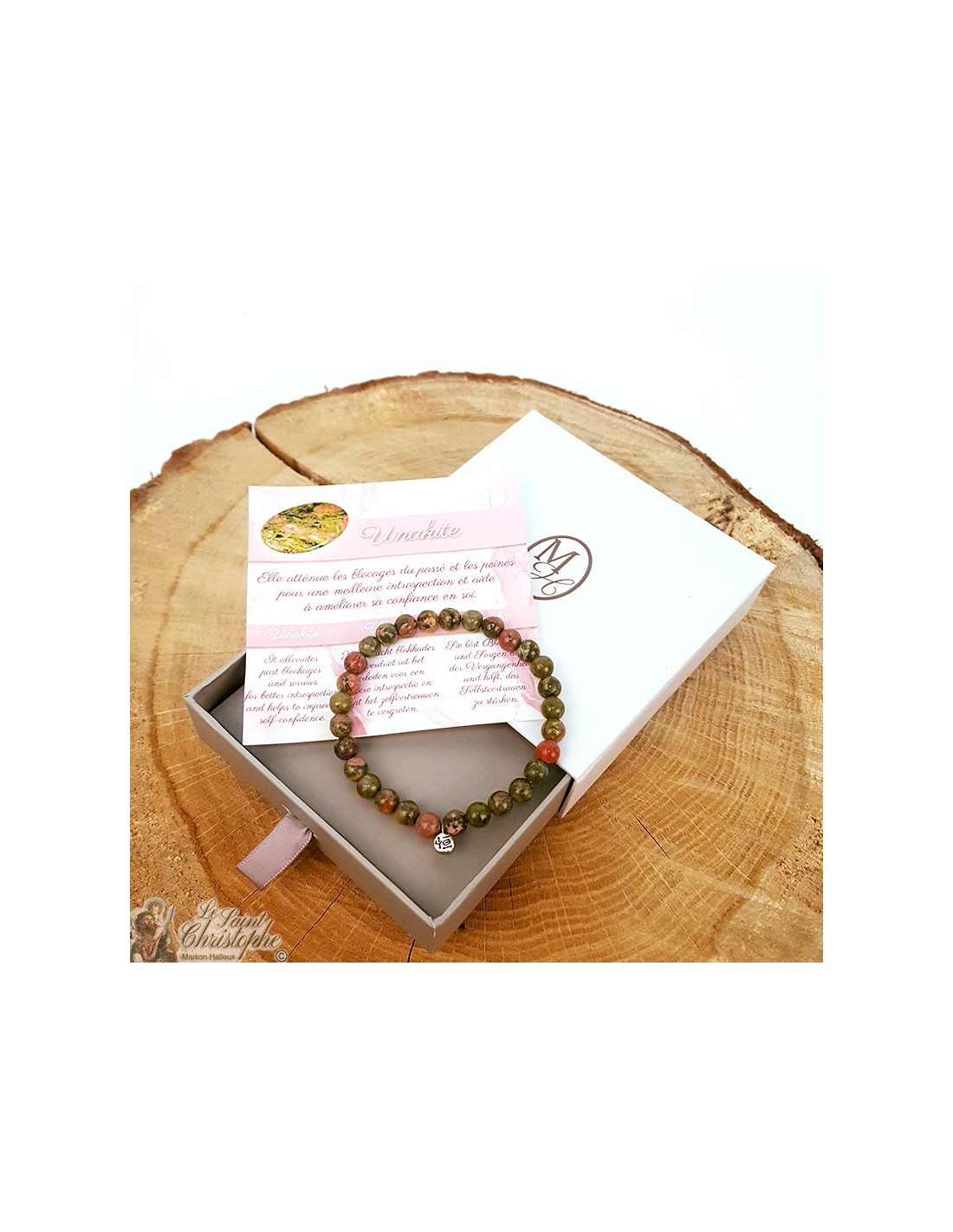 A variety of granite with multiple colors ranging from moss green to beige to yellow and red, unakite helps cultivate and deepen introspection and knowledge by easing emotional pain and blockages and balancing strong emotions that cloud our vision and judgment such as jealousy or anger. It is beneficial for people who are too indecisive or self-deprecating as it will help them see their qualities and learn from their mistakes. According to the principles of lithotherapy, unakite is useful at the physical level to recover strength after a serious illness or convalescence, it promotes digestion and strengthens the immune system.