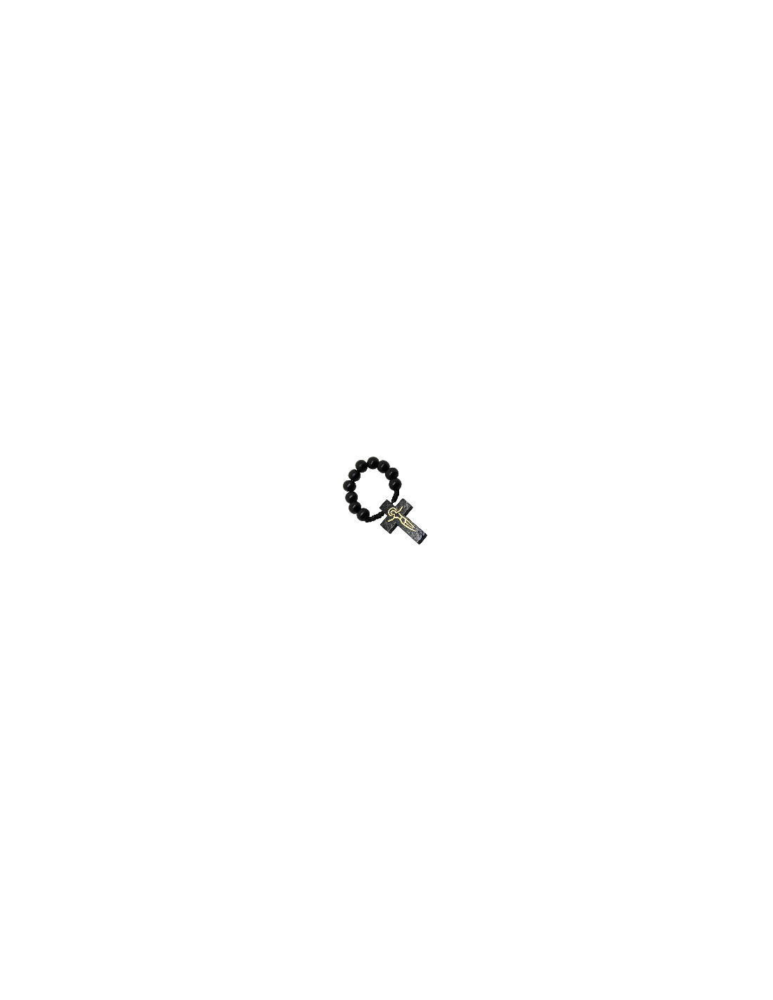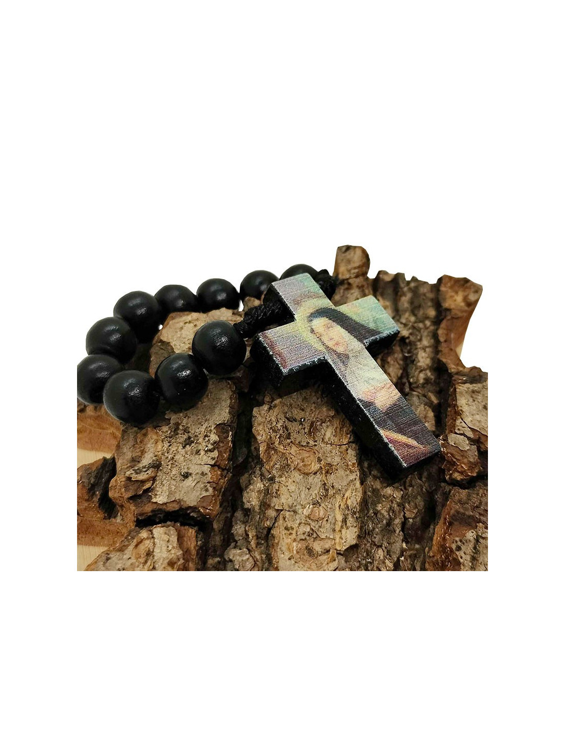 Ten in black wood. The cross of Christ is made of black wood with the figure of Jesus painted in gold and the portrait of Saint Rita on the back. This tenner is a small pocket size, practical for taking it anywhere with you.