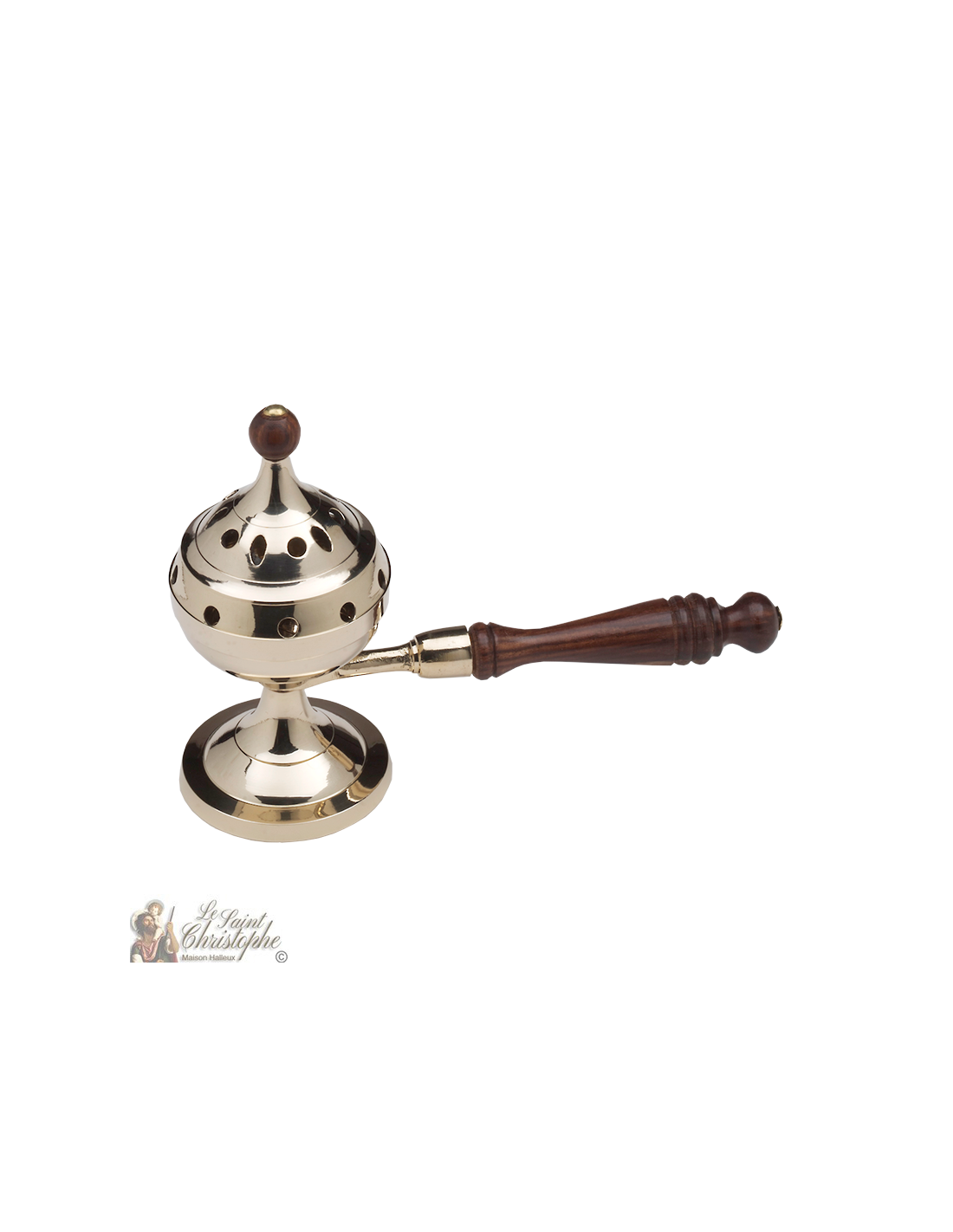 Censer on copper stand with long wooden handle