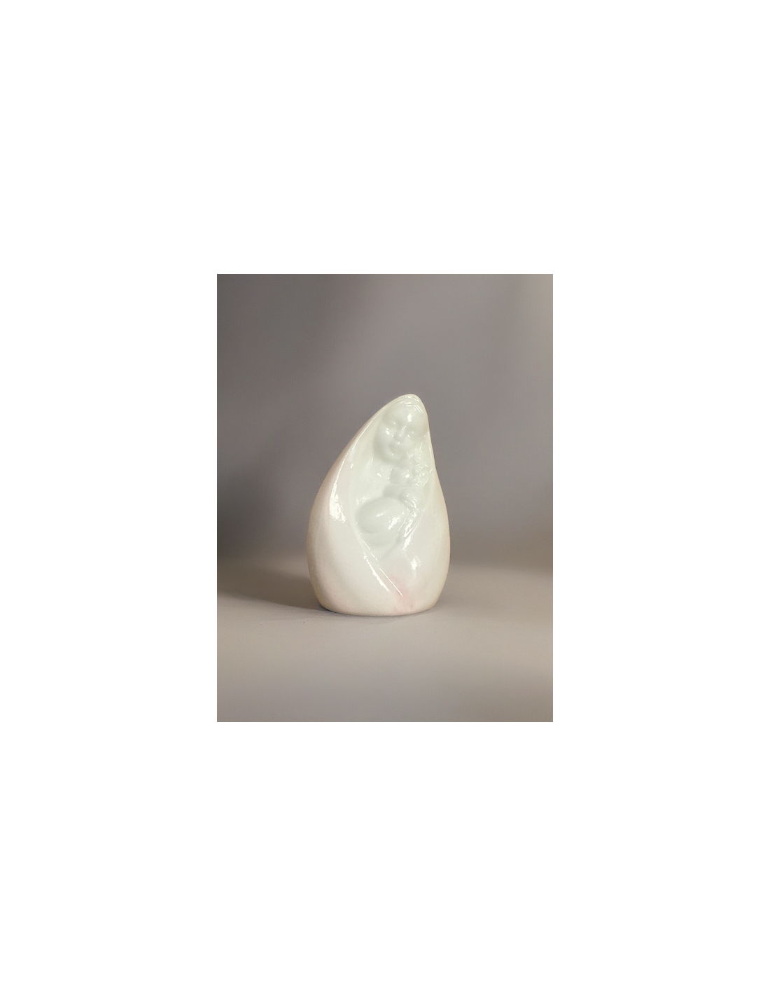 This elegant Virgin Mary and Child statue in white and pink ceramic measures 6 cm in height. Its simple and soft design makes it a discreet yet meaningful piece. It fits perfectly on an altar, a prayer table, a shelf, or as a spiritual decoration.