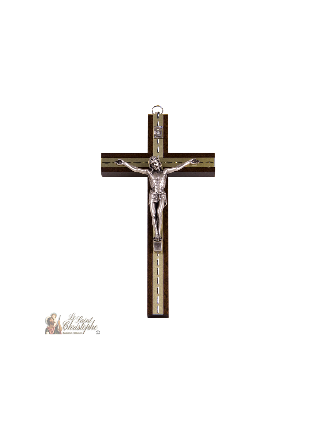 Wall Crucifixes Small wooden cross with carved gold plates 17484- 4530/1 €13.99 Small wooden cross with carved gold metal decorations and silver effigy of Jesus Christ.Dimensions: 15 cm by 9 cmWeight: 65 gr Add to cart