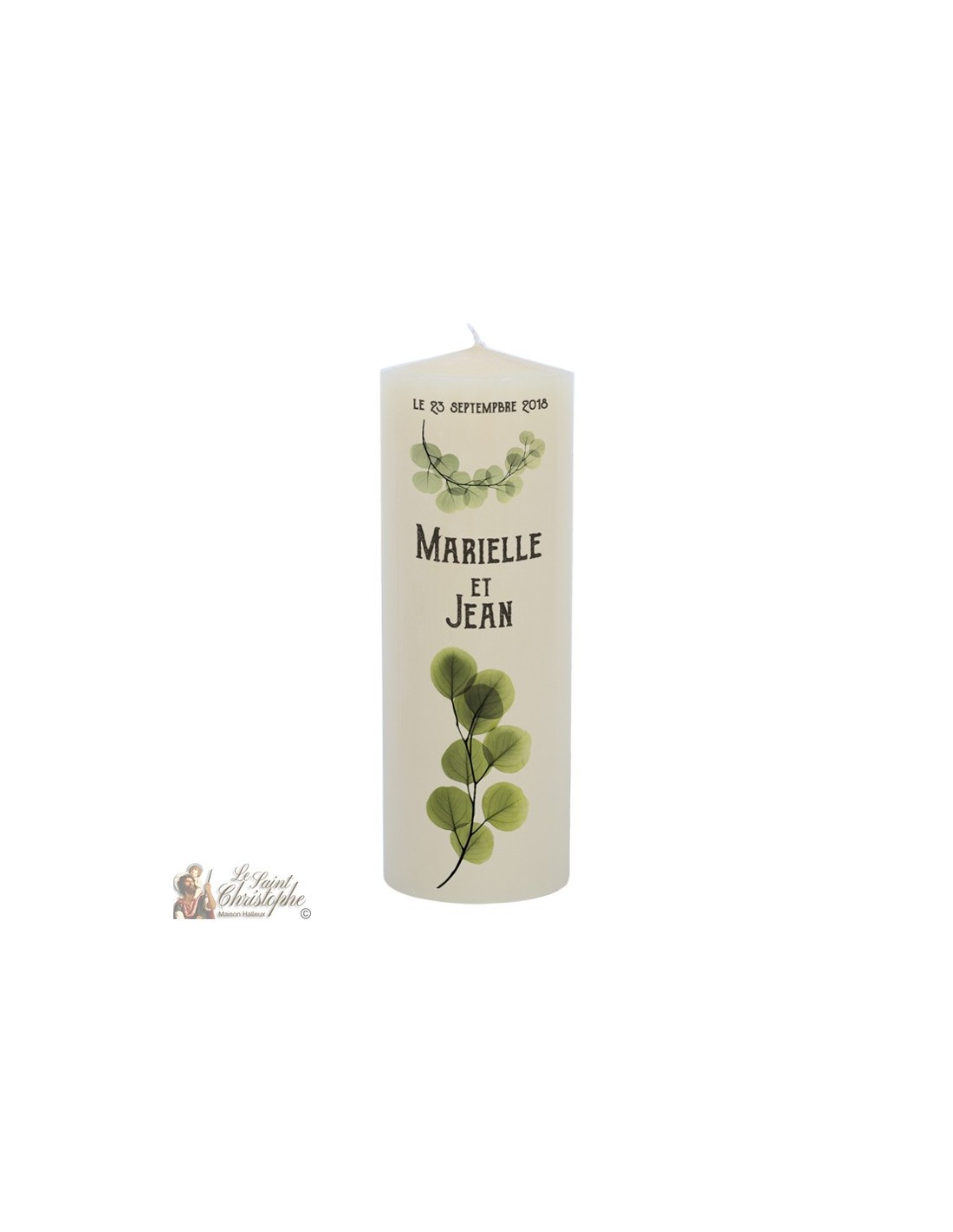 Last items in stock Wedding candle Customizable wedding candle - Flower wreath 14813 €29.00 Natural wax candle Size: 70 X 200 mm Weight: 680 gr Add to cart