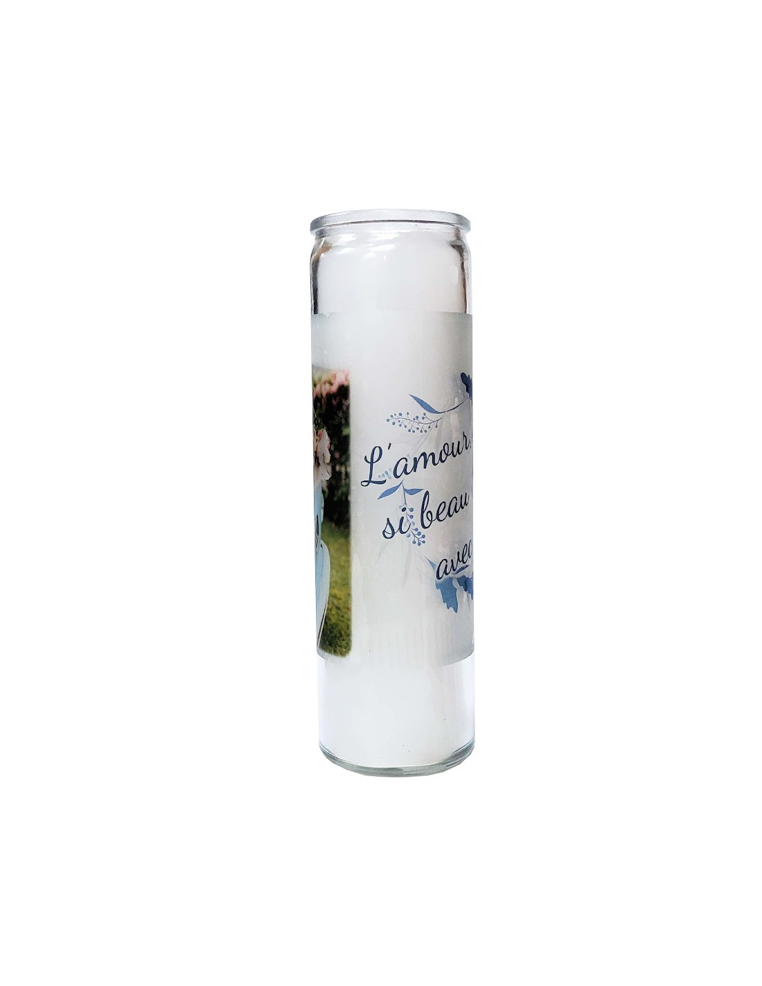 Don't forget to save your customization to be able to add to cartCandle in a sturdy glass container. The wax flows inside the container, giving a photophore effect during combustion, the flame shining through the thin layer of wax. The paraffin, white which can have cream and ivory tints, flows inside the container, giving a photophore effect during combustion, the flame shining through the thin layer of wax.