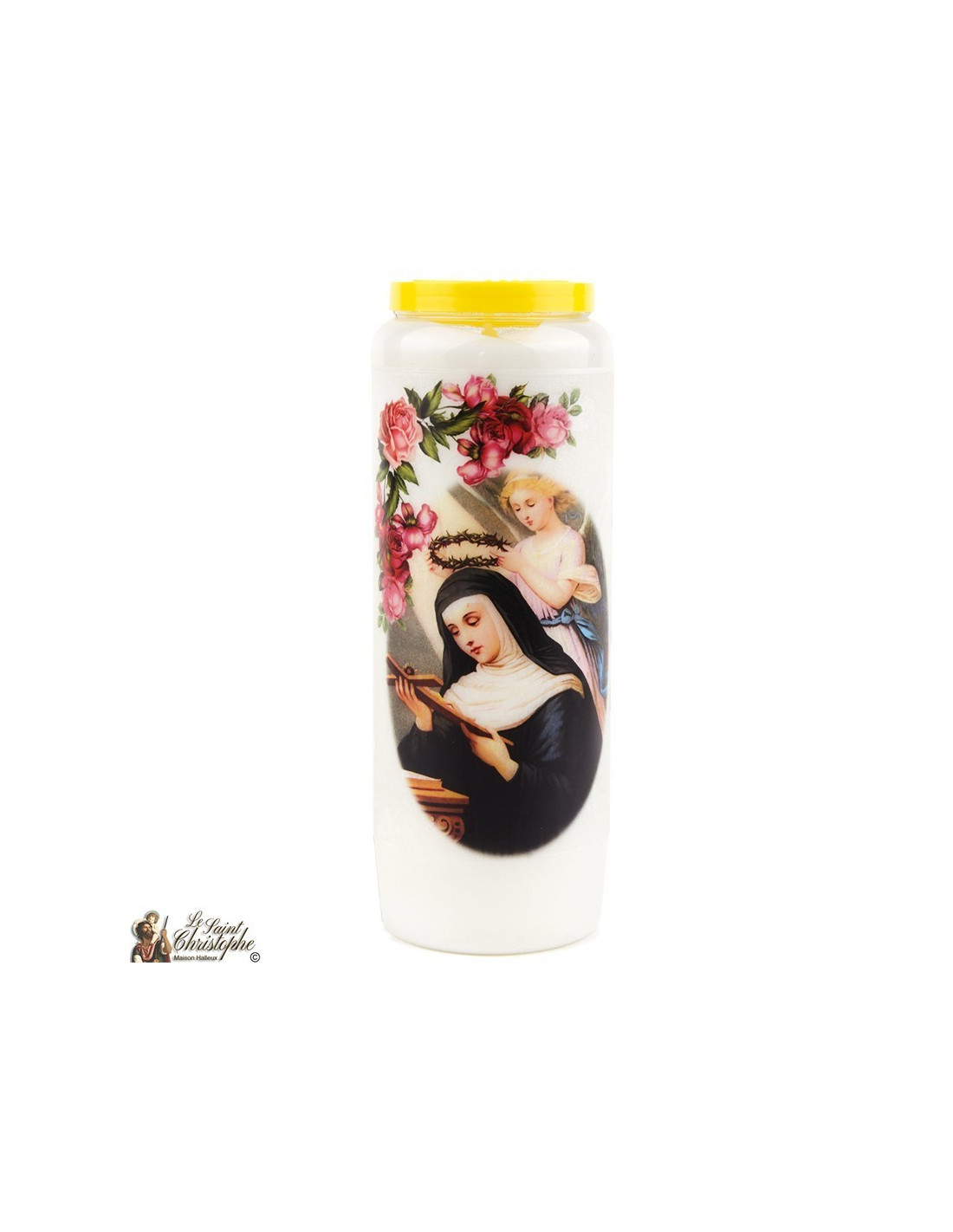 Plant novena candle with image of Saint Raphael and prayer dedicated to him.