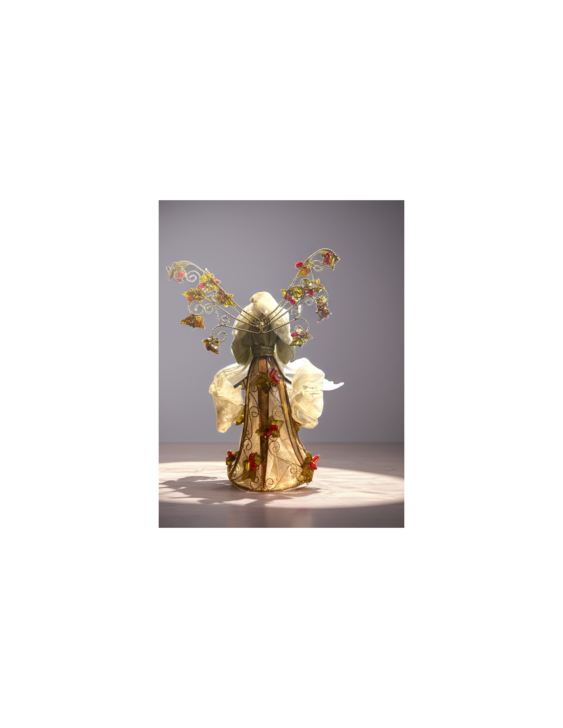 Su diseño refinado, sus alas decorativas y sus acabados detallados lo convierten en una pieza única, ideal para adornar su casa en Navidad.