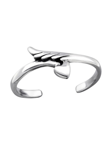 Anillo en forma de ala de ángel y dedo del pie corazón - Plata 925