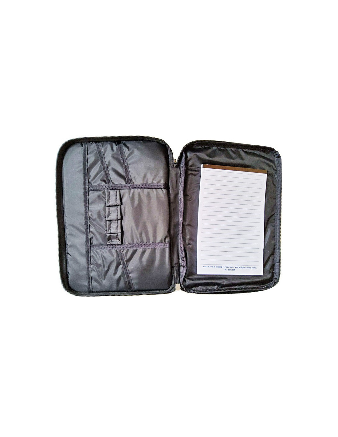 Sabemos lo importante que es su Biblia para usted. Es por eso que le traemos una cubierta de Biblia de primera calidad que no solo protege la cubierta de su Biblia de daños y manchas, sino que también proporciona un almacenamiento conveniente para lo esencial para estudiar los Textos Sagrados.