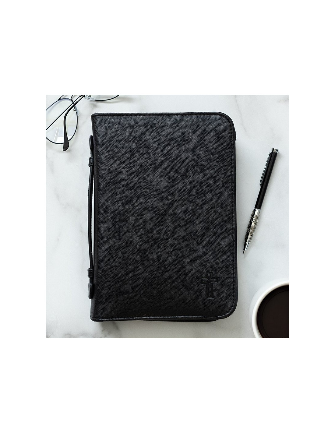 Funda para Biblia de piel sintética texturizada negra - Grande