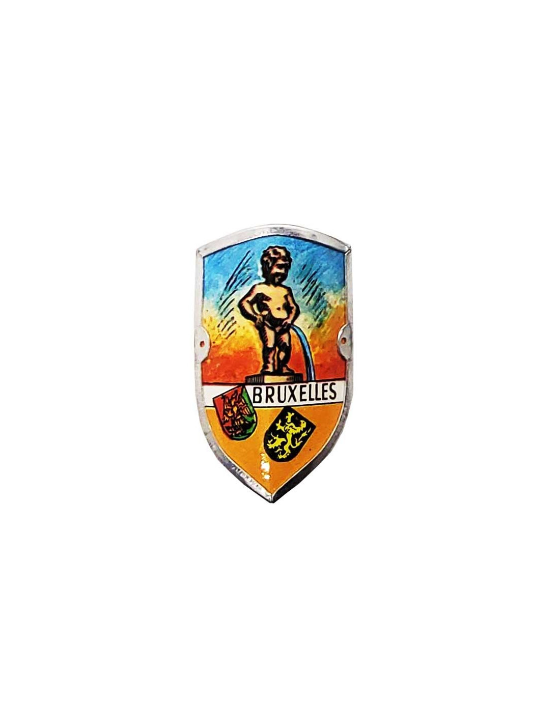 Añada un toque de autenticidad a su bastón con nuestra insignia de recuerdo de Bruselas. Este pequeño escudo decorativo, que puede clavarse o pegarse en su bastón, presenta una pintoresca escena: el Manneken Pis con el escudo de Bruselas y Flandes, con la inscripción "Bruxelles" debajo.