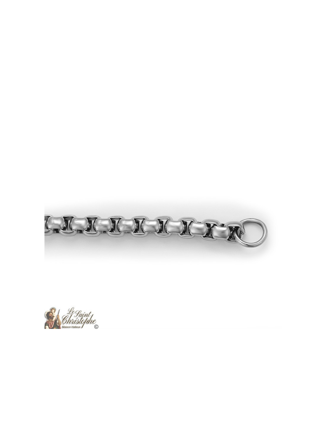 Cadena de acero inoxidable, plata brillante, con eslabones gruesos ligeramente cuadrados para un estilo moderno.
