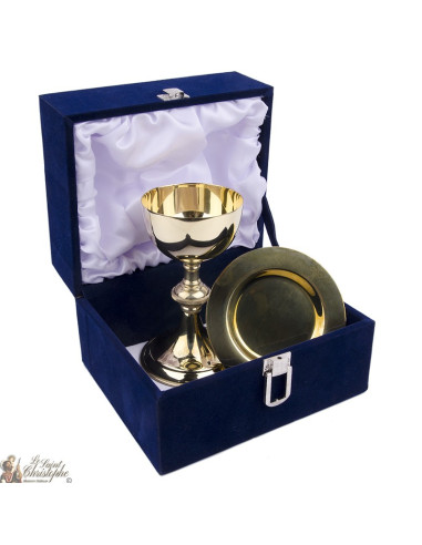 Juego de Cáliz, Patena y Copón – Exterior plateado, interior dorado 24 qt