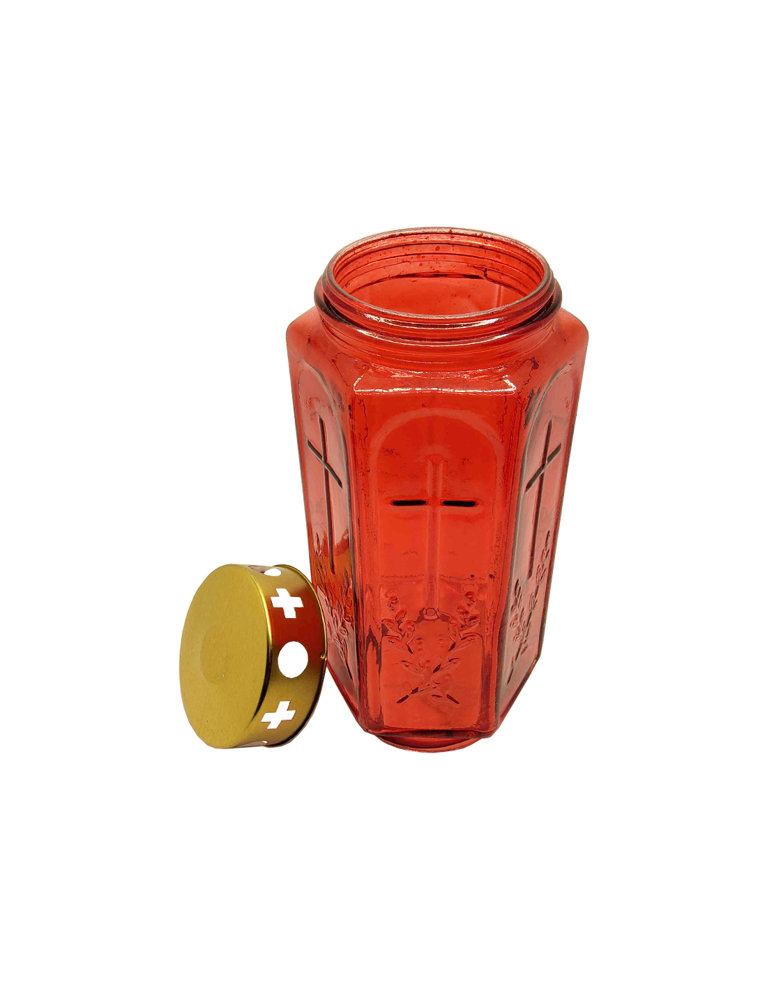 Su diseño tradicional y sencillo la convierte en una luz votiva ideal para honrar la memoria de los difuntos.