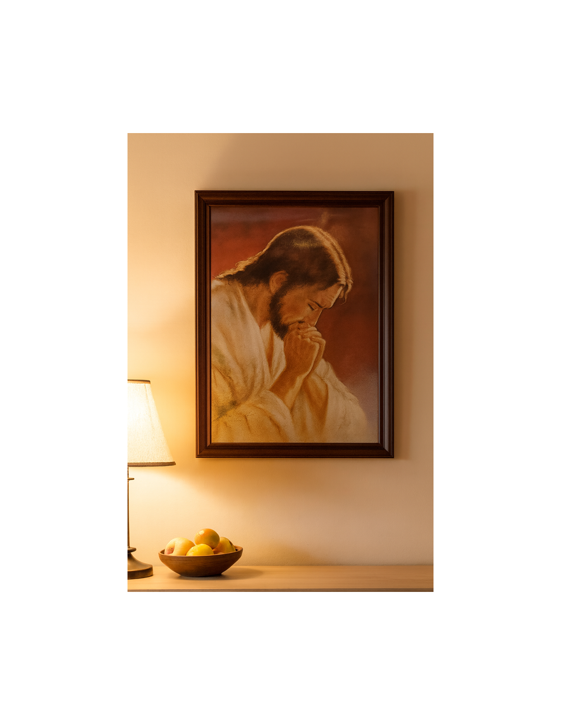 Aporta un toque espiritual y sereno a tu espacio con este hermoso póster de Jesús orando.
