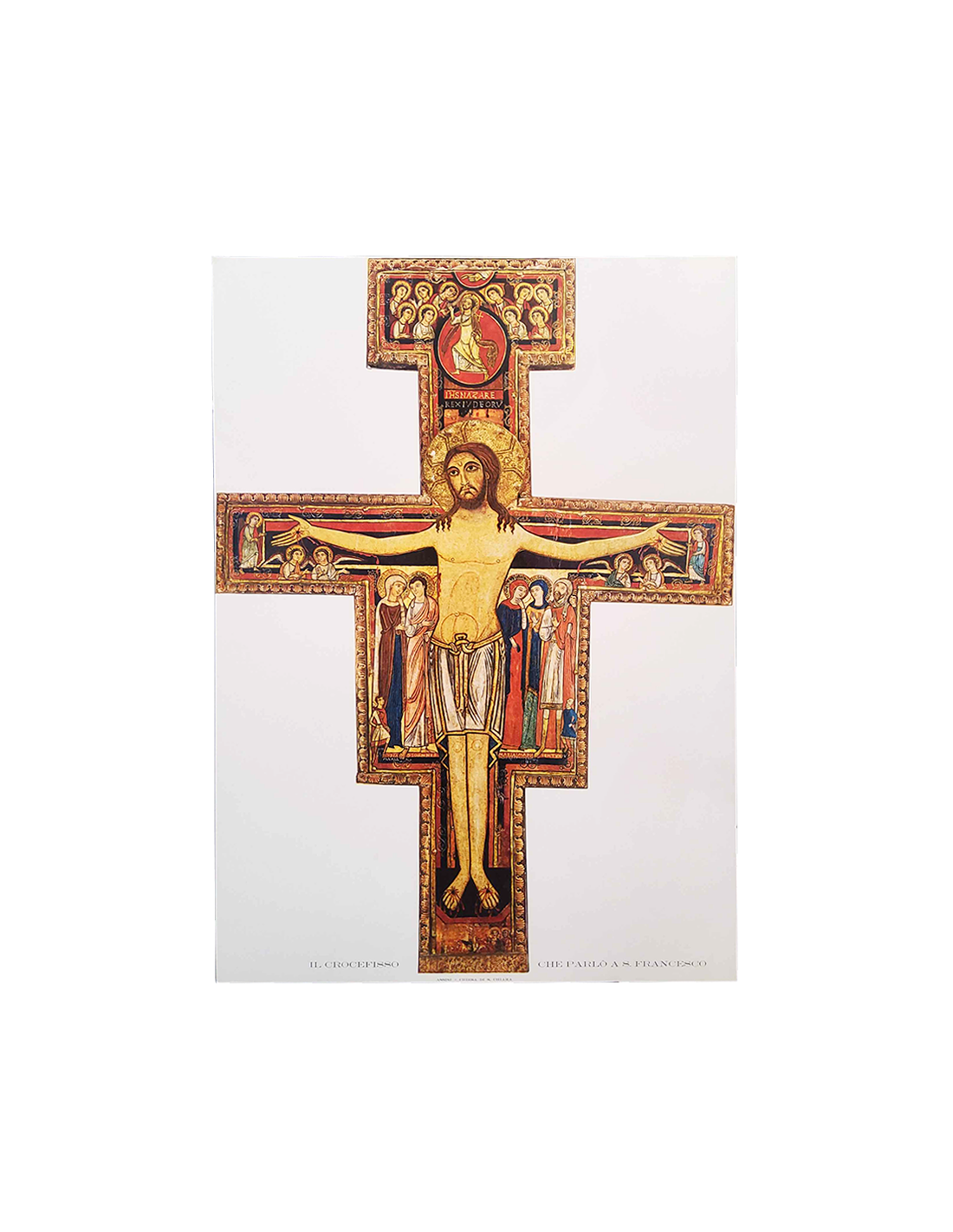 La Cruz de San Damián es famosa por haber “hablado” a San Francisco, llamándolo a reconstruir la Iglesia. Este póster es una pieza espiritual única, perfecta para capillas, iglesias, hogares o espacios de oración.