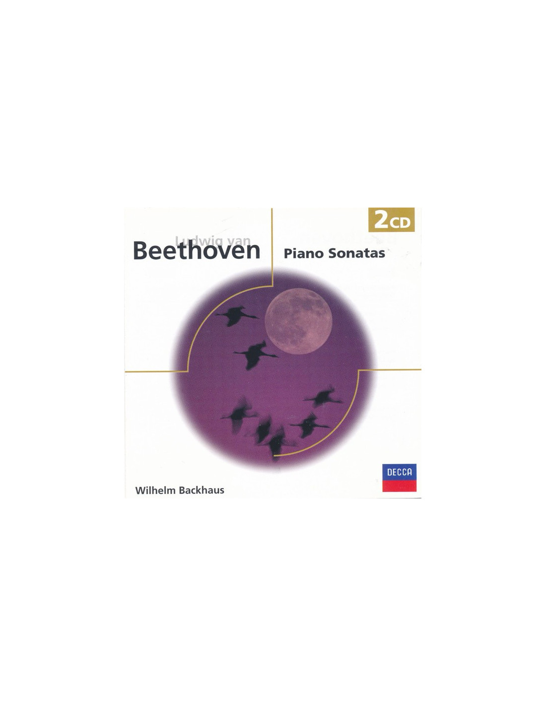 Estuche de dos CD de audio que contiene 129 minutos de sonatas para piano compuestas por Ludwig van Beethoven e interpretadas por Wilhelm Backhaus. Una delicia de música clásica.