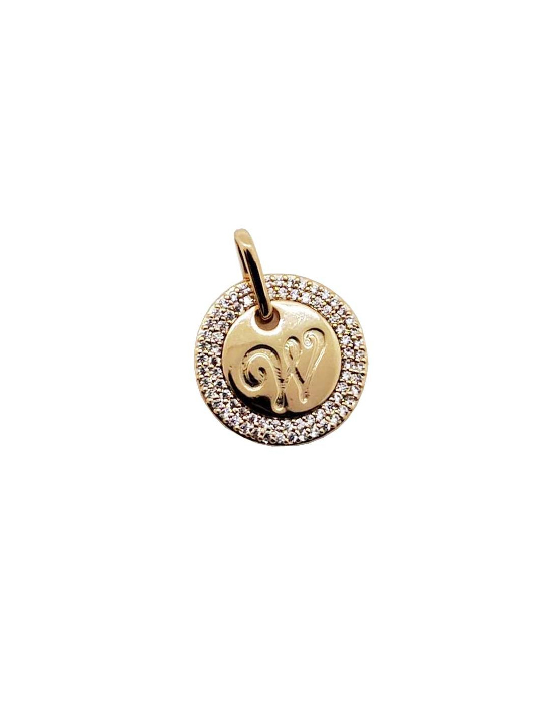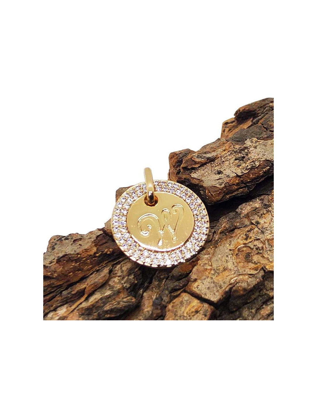 Colgante grabado con la letra W en una bella caligrafía cursiva redonda. Realizada en metal chapado en oro, la joya está incrustada con dos hileras de brillantes blancos. Una joya que puede utilizarse como regalo o recuerdo para un ser querido cuya inicial empiece por esta letra.