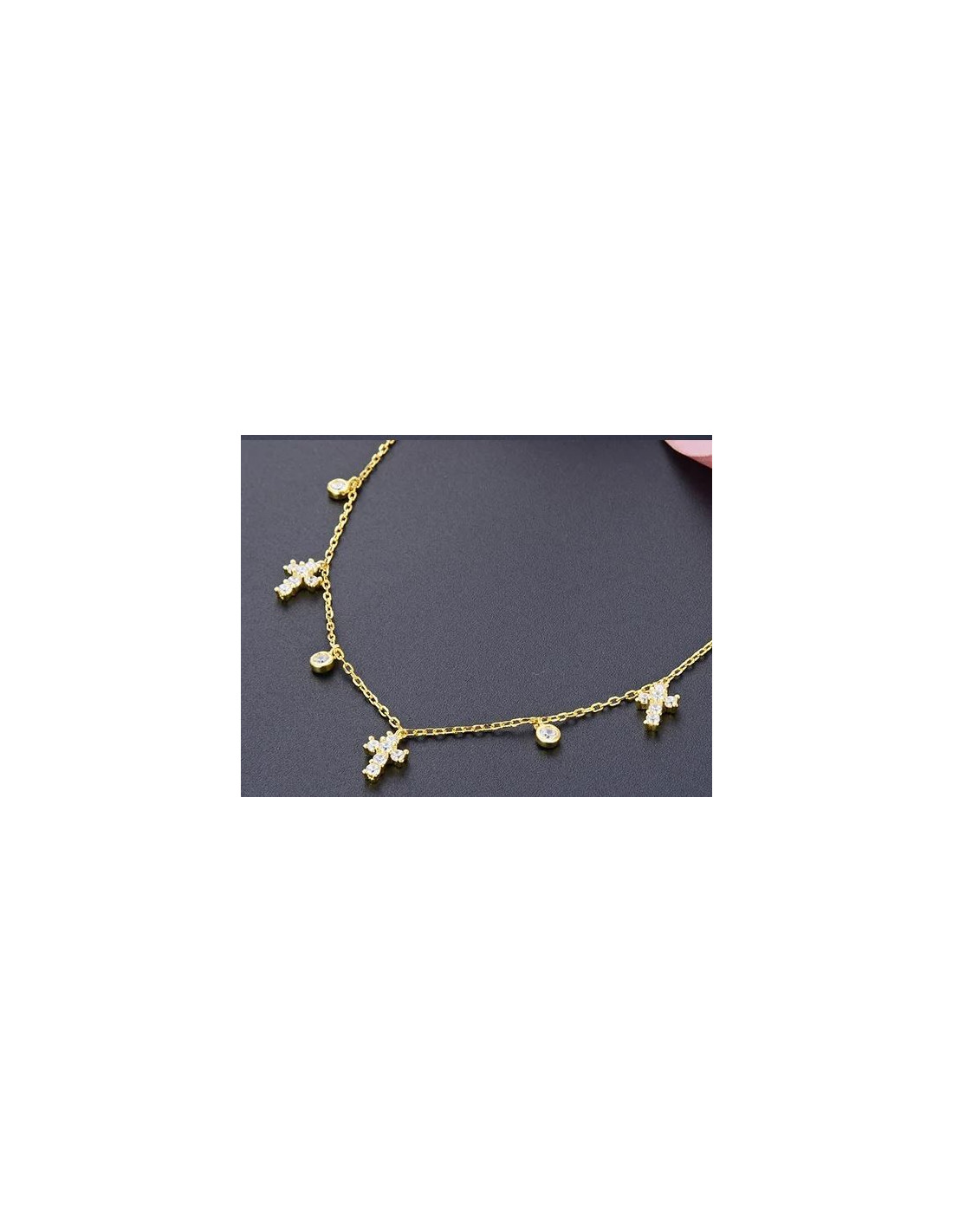 Collar con pequeñas cruces en plata de ley 925 y baño de oro