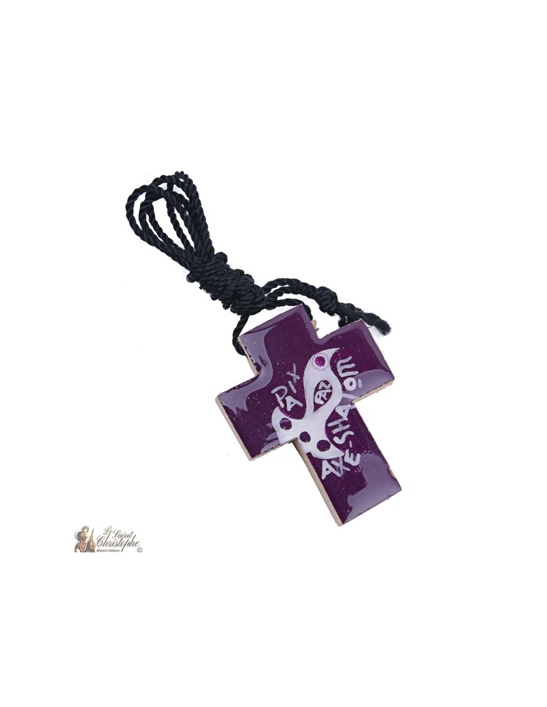 Collar cruz de San Benito - cordón de cuero y madera de olivo