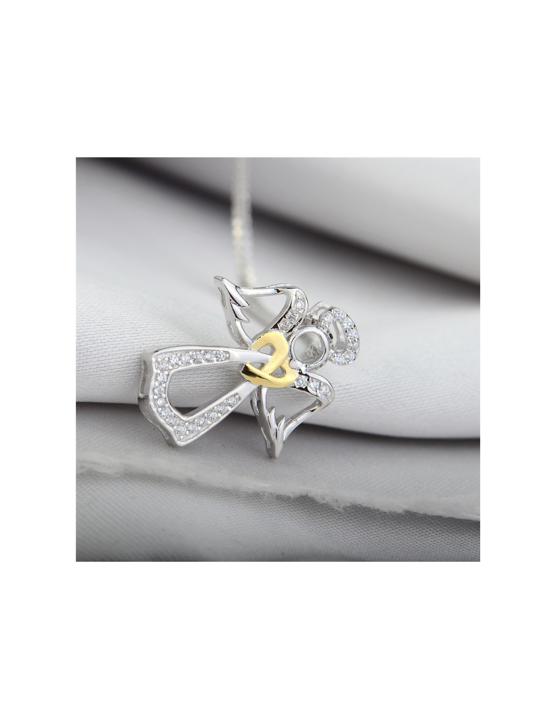 Collar de plata con su colgante de ángel de plata con incrustaciones de circones y cristales - plata 925