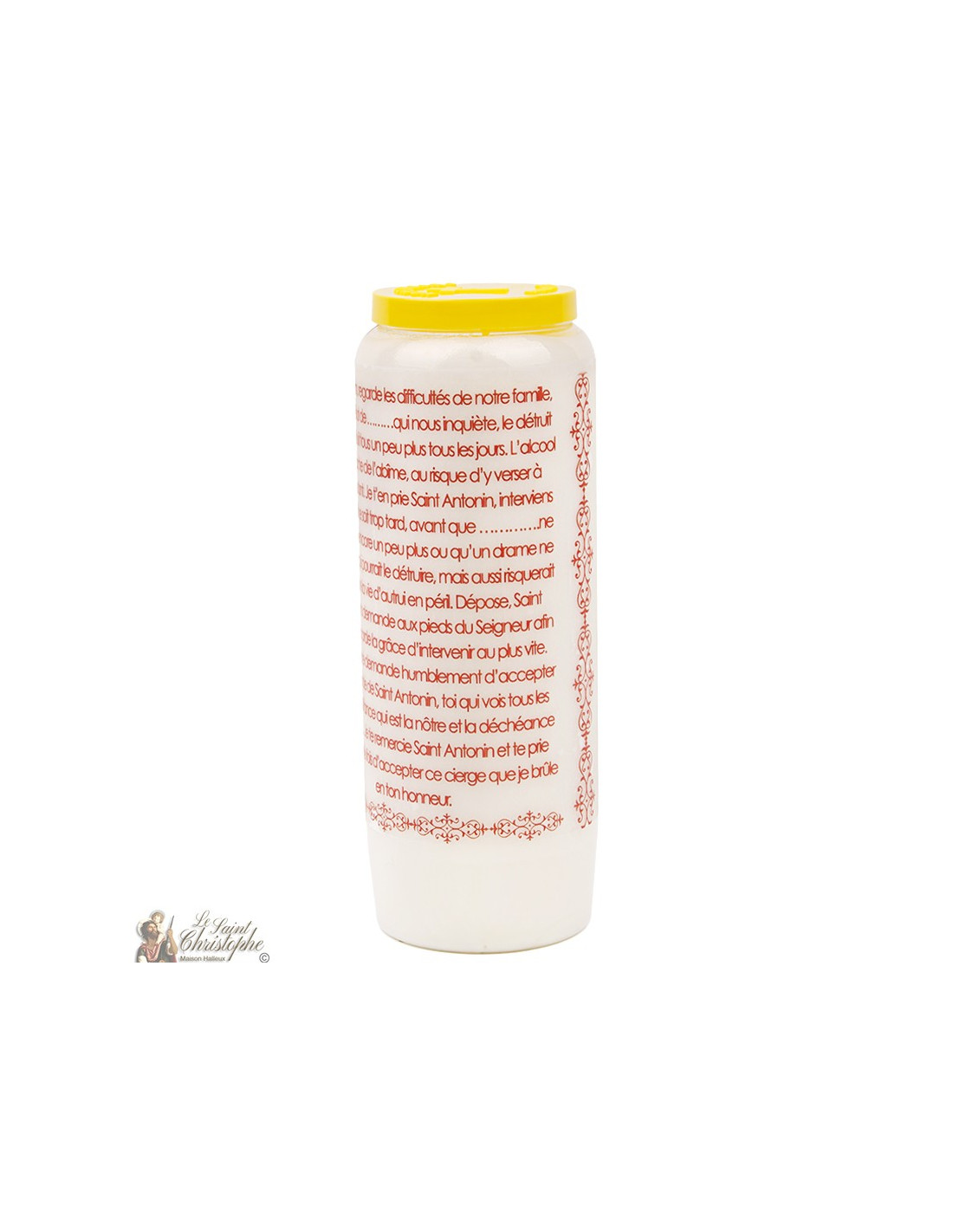 Últimas unidades en stock Con fotos y oraciones Velas de la novena de Saint Yves - caja de 20 unidades 5430001266955 65,00 € Velas de novena en aceite vegetal con una imagen de San Yves y una oración dedicada a él.Quema continua entre 9 y 11 días, dependiendo de la temperatura ambiente.Hecho de aceite vegetal.Dimensiones : 6 x 18 cmPeso : 520 grCaja de 20 unidades Añadir al carrito
