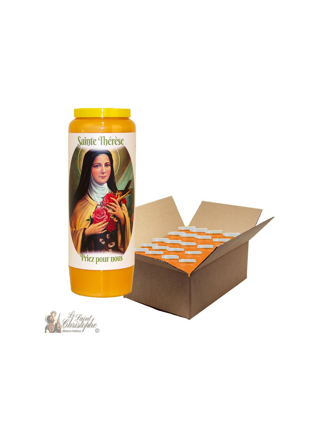 Vela de novena naranja para Santa Teresa de Lisieux - caja de 20 piezas