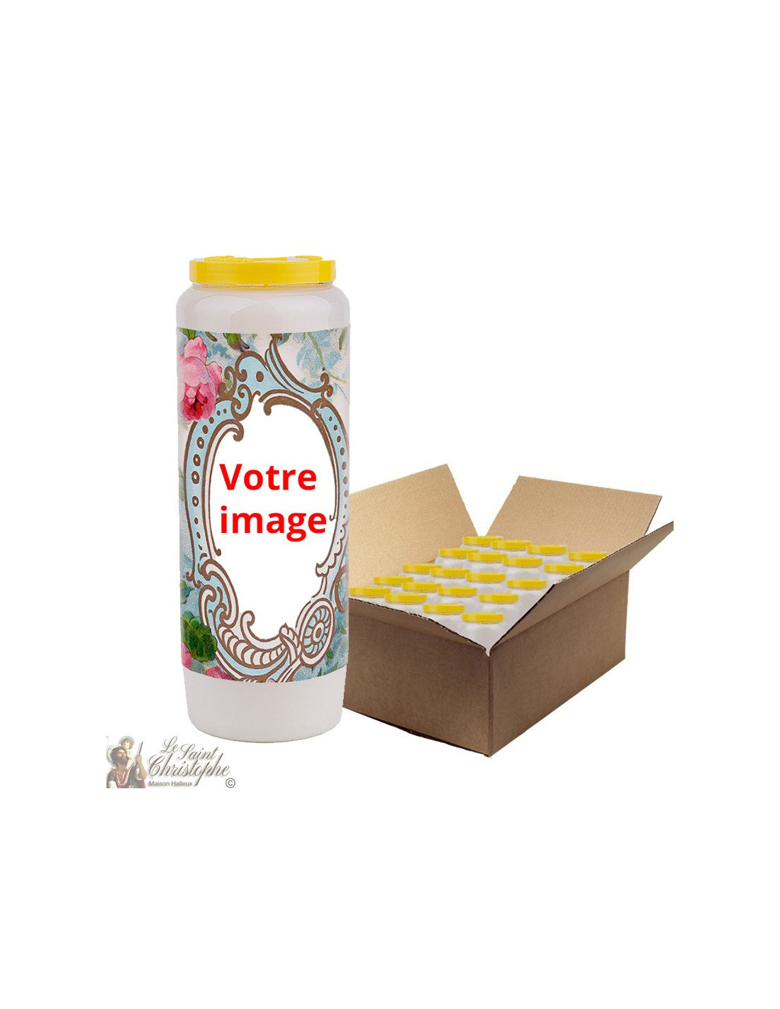 Una caja contiene 20 velas de novena. ¡Puedes mezclar diferentes colores, imágenes y fragancias!