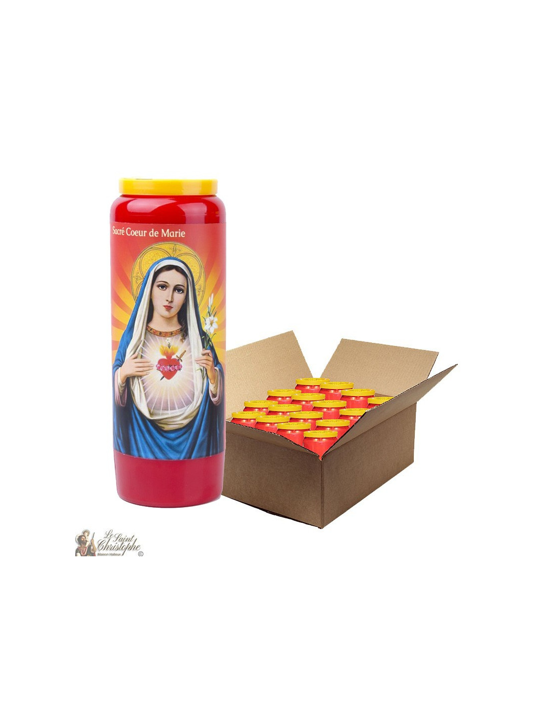 Vela de Novena Roja con el Sagrado Corazón de María - caja de 20 piezas