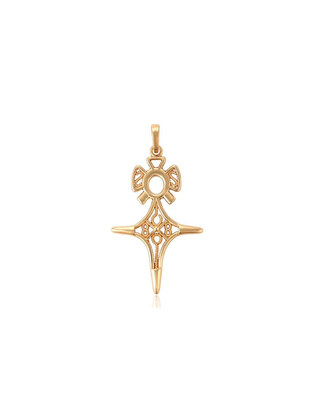 Este colgante chapado en oro es una delicada joya que mezcla elegancia y astronomía. ¡Perfecto para alguien que tiene la cabeza en las estrellas! Esta cruz se reconoce por su forma típica con la cabeza rodeada porque permite reconocer en el cielo la constelación de la Cruz del Sur. El colgante está finamente tallado, con detalles refinados.