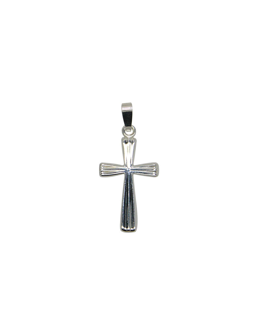 Colgante de plata genuina 925 en forma de cruz con la cara forrada. Estos rayos evocan los rayos luminosos de la fe.