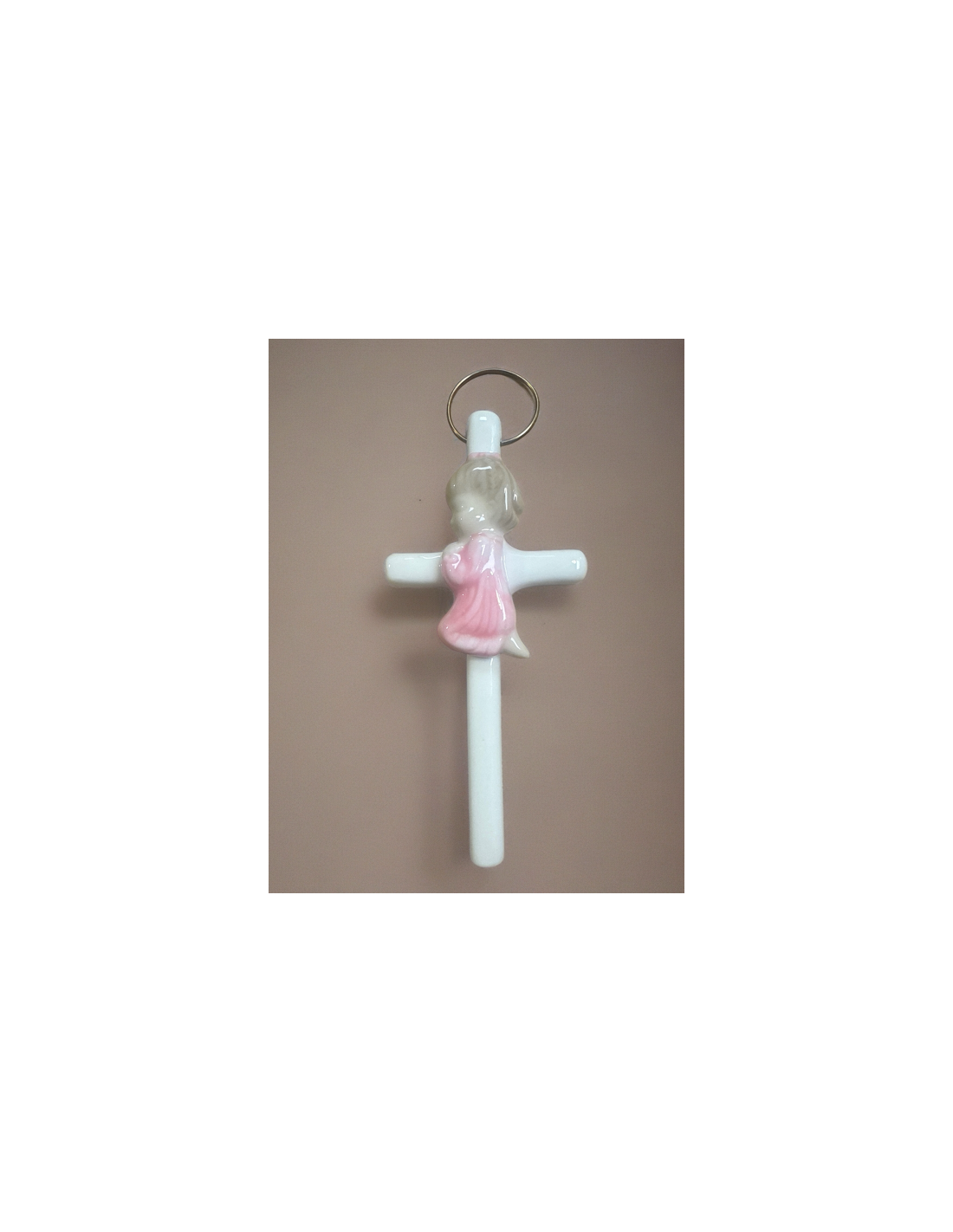 Cruz religiosa niña rezando 7 x 15 cm – Cerámica blanca