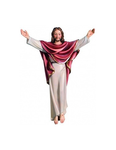 Cristo resucitado completamente tallado en madera mural y coloreado a mano