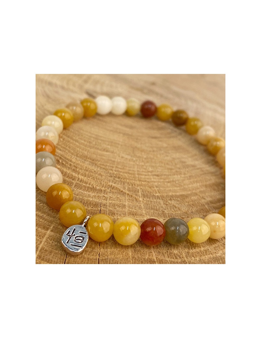 Esta pulsera elástica de piedras naturales de jade amarillo es un delicioso toque de sol para llevar en la muñeca.