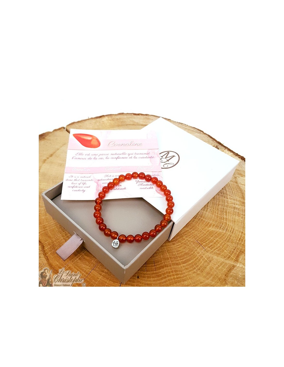 Esta pulsera elástica de cornalina es un delicioso toque cálido y natural para llevar en la muñeca.