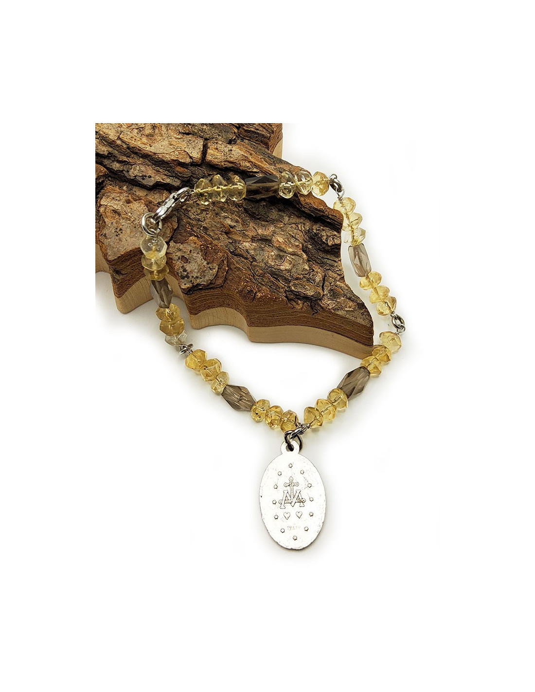 Pulsera con Medalla de la Virgen Milagrosa - Citrino y Cuarzo Ahumado