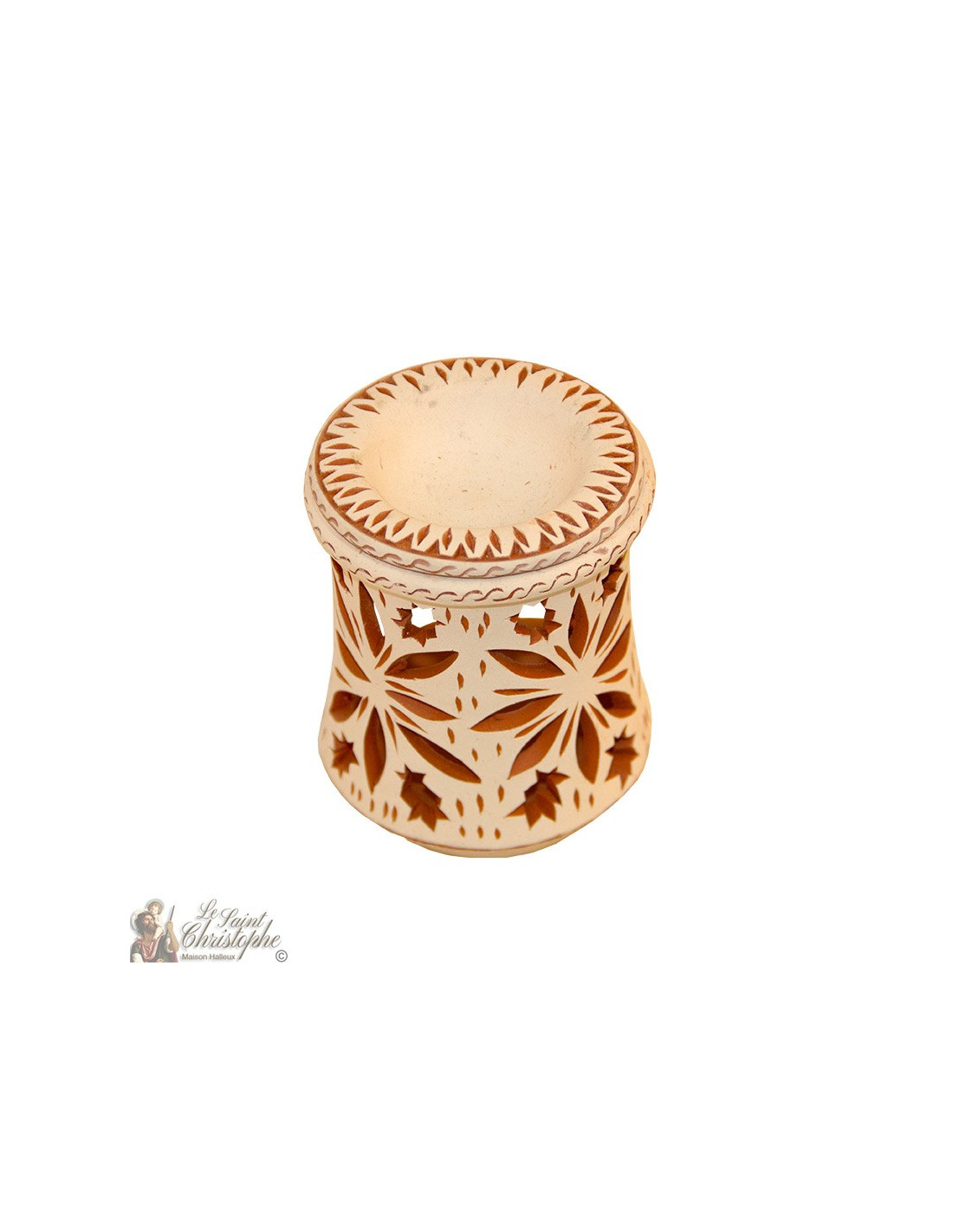 Quemador de aceite para velas de terracota - flores y acebo