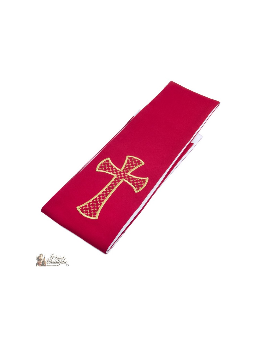 Estola bicolor bordada Cruz dorada – Rojo y Blanco