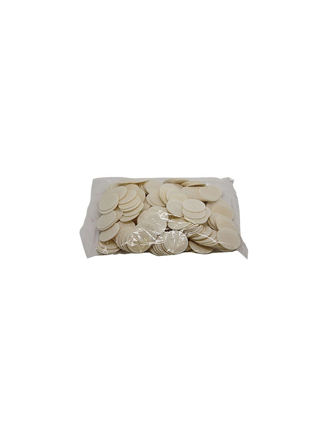 Estas hostias blancas de 3,5 cm de diámetro están destinadas a la celebración de la Eucaristía. Cumplen con los requisitos litúrgicos y son adecuadas para la comunión de los fieles durante la misa.