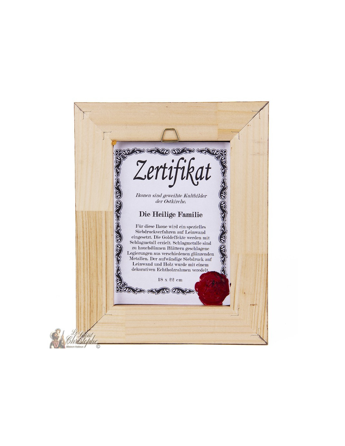 Este icono de la Sagrada Familia, enmarcado en madera dorada envejecida finamente imitada, representa a José, María y el Niño Jesús en una postura llena de ternura y unidad. Jesús bendice con su mano derecha, un gesto rico en significado espiritual. Esta obra de 18 x 22 cm, que se entrega con su certificado de garantía, encarna la paz, el amor familiar y la presencia divina en el hogar.
