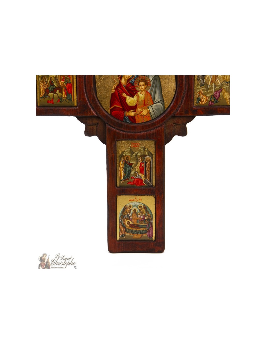 Icono de cruz 37 x 24 cm - Sagrada Familia y escenas bíblicas