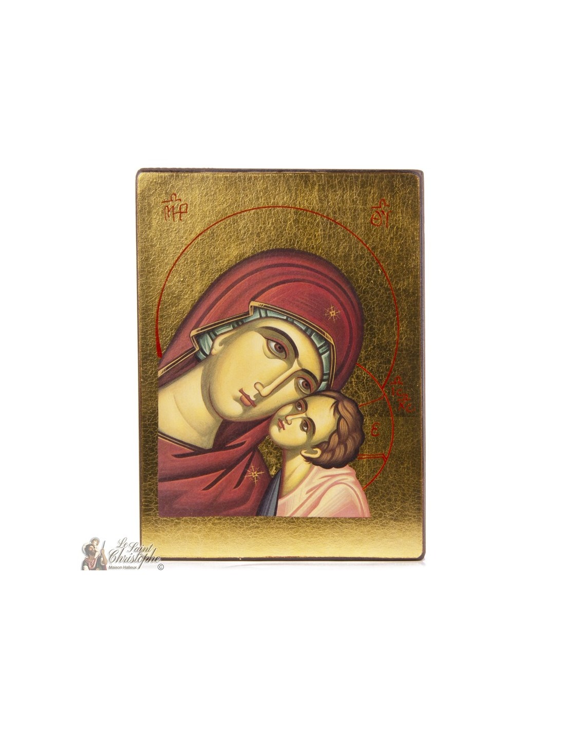Icono Virgen de la Ternura - Madera dorada 10,5 x 14,5 cm