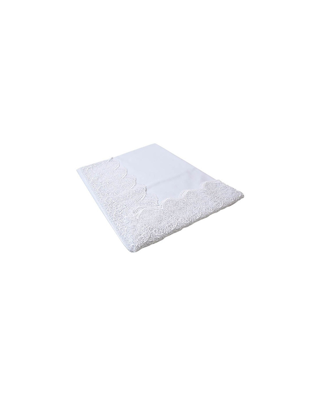Magnífico mantel de altar para servicios religiosos. El mantel está bordado por tres lados con un friso de cruces de ganchillo. El mantel y el bordado son totalmente blancos. Para facilitar su uso, el tejido se puede lavar a máquina.