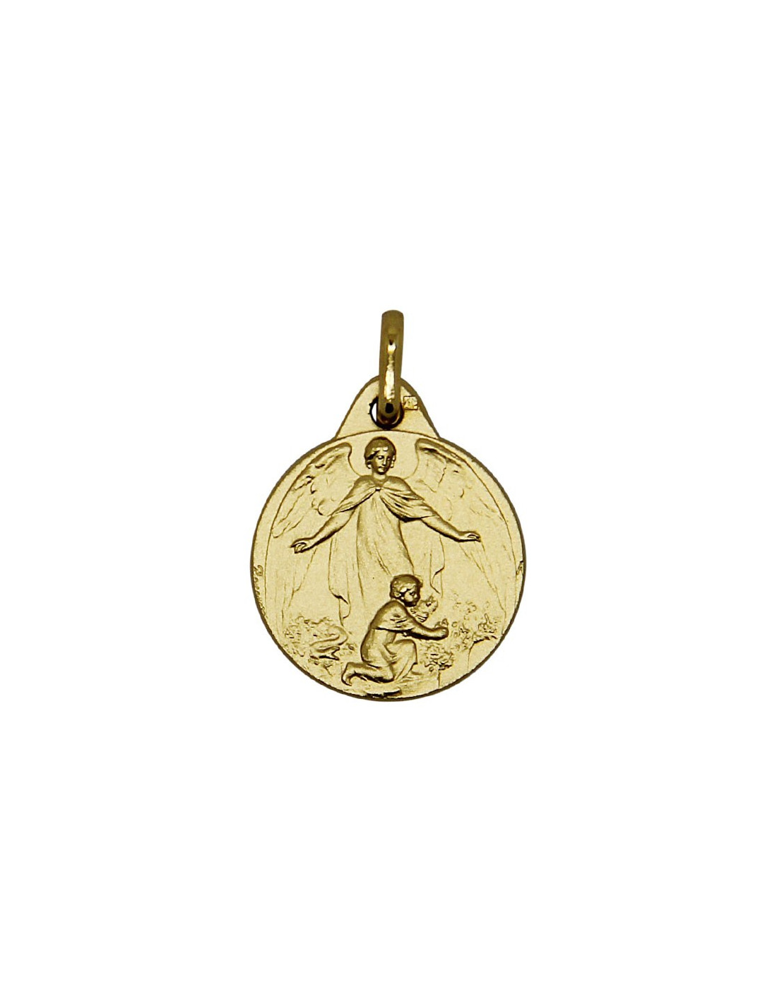 Descubra esta medalla de ángel de la guarda chapada en oro 18K, símbolo de protección y fe.