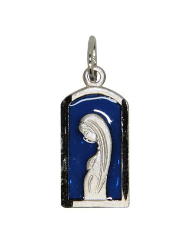 Medalla moderna de la Virgen María en metal plateado y esmalte azul