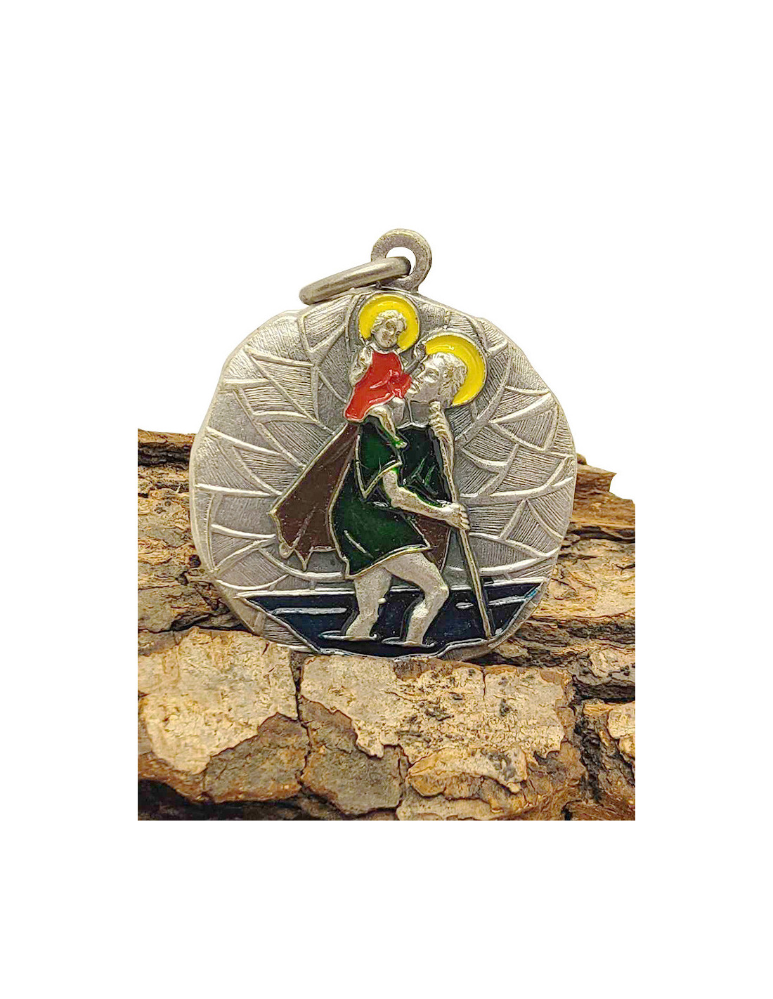 Medalla de San Cristóbal de metal plateado y esmalte de colores, 33 mm